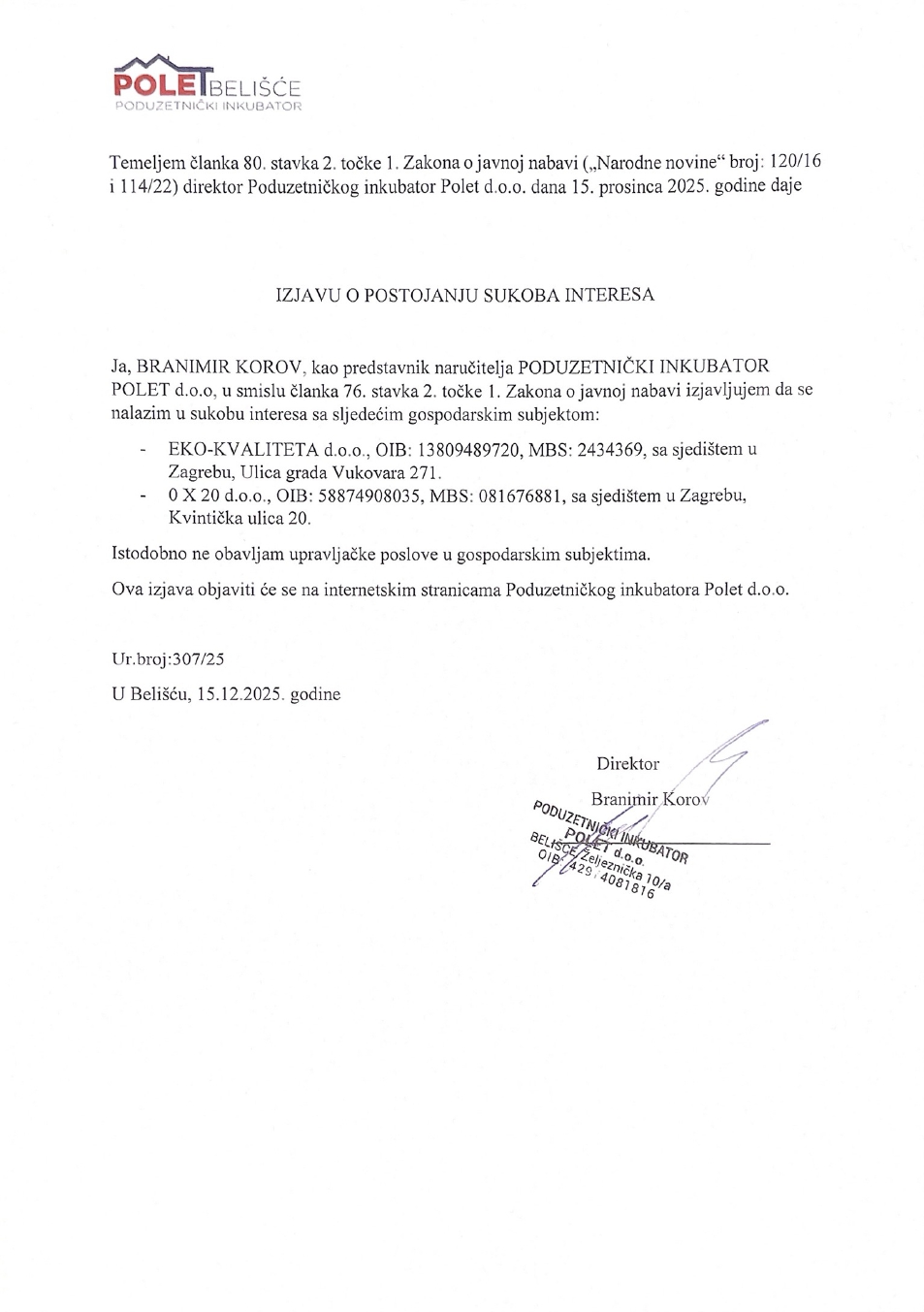 IZJAVA O POSTOJANJU SUKOBA INTERESA